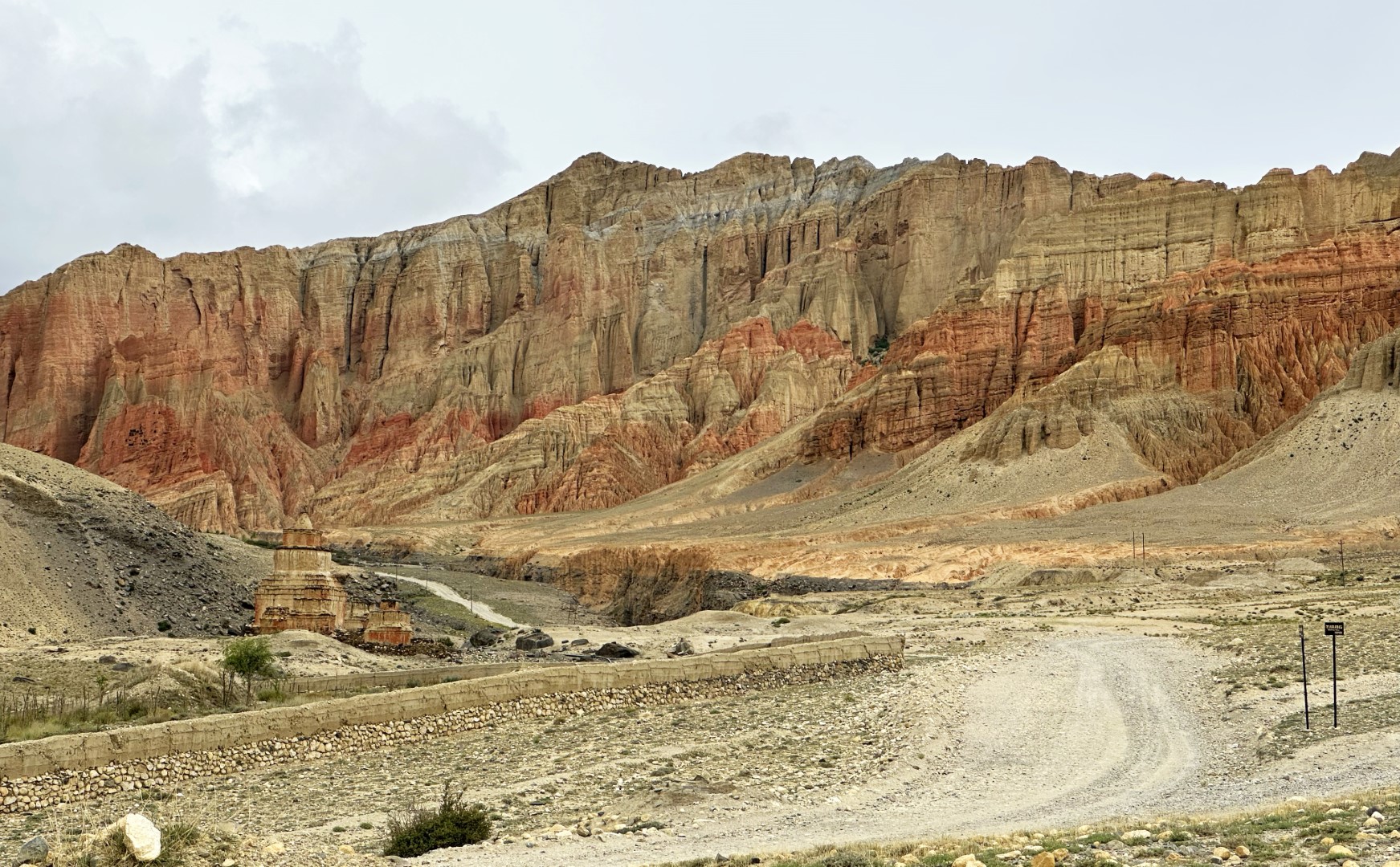Finally the day everyone has been waiting for – as we make our way into Upper Mustang! A few kilometres of tarmac to start with, before the road suddenly turns to dirt and the scenery changes completely! Absolutely mind blowing vistas everywhere you look, with mountains of all colours appearing around each bend. The road is graded dirt and challenging over the course of the full day, but totally worth it. The landscape is totally untouched and we barely cross any other traffic all day long! We halt for the night in the small village of Charang, which will be our home for the next two nights.